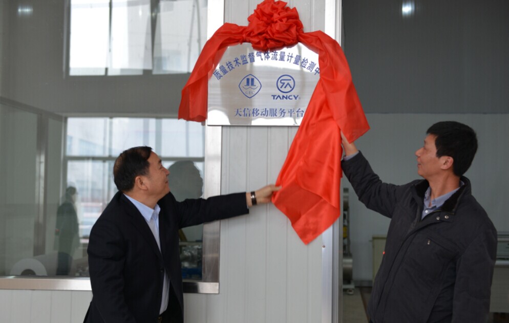 大約上午9點半,天信所有中高層領導和江蘇省質量技術監督氣體流量計量檢測中心領導移步服務平臺現場,在熱烈的掌聲和喜慶的鞭炮聲中,天信儀表集團總裁范叔沙和鎮江計量所所長石建榮共同為質量技術監督氣體流量計量檢測中心——天信移動服務平臺揭牌,在場所有領導和相關人員共同見證了這一重要的時刻,相信這一歷史性時刻對于雙方來說都有里程碑式的意義。簡短而隆重的揭牌儀式后,大家進行了合影留念,然后由范總親自帶領石所長一行參觀工廠,熱情詳細地介紹了公司目前的經營狀況和將來的發展規劃,為這一次簽約揭牌儀式畫上了一個完美的句號。